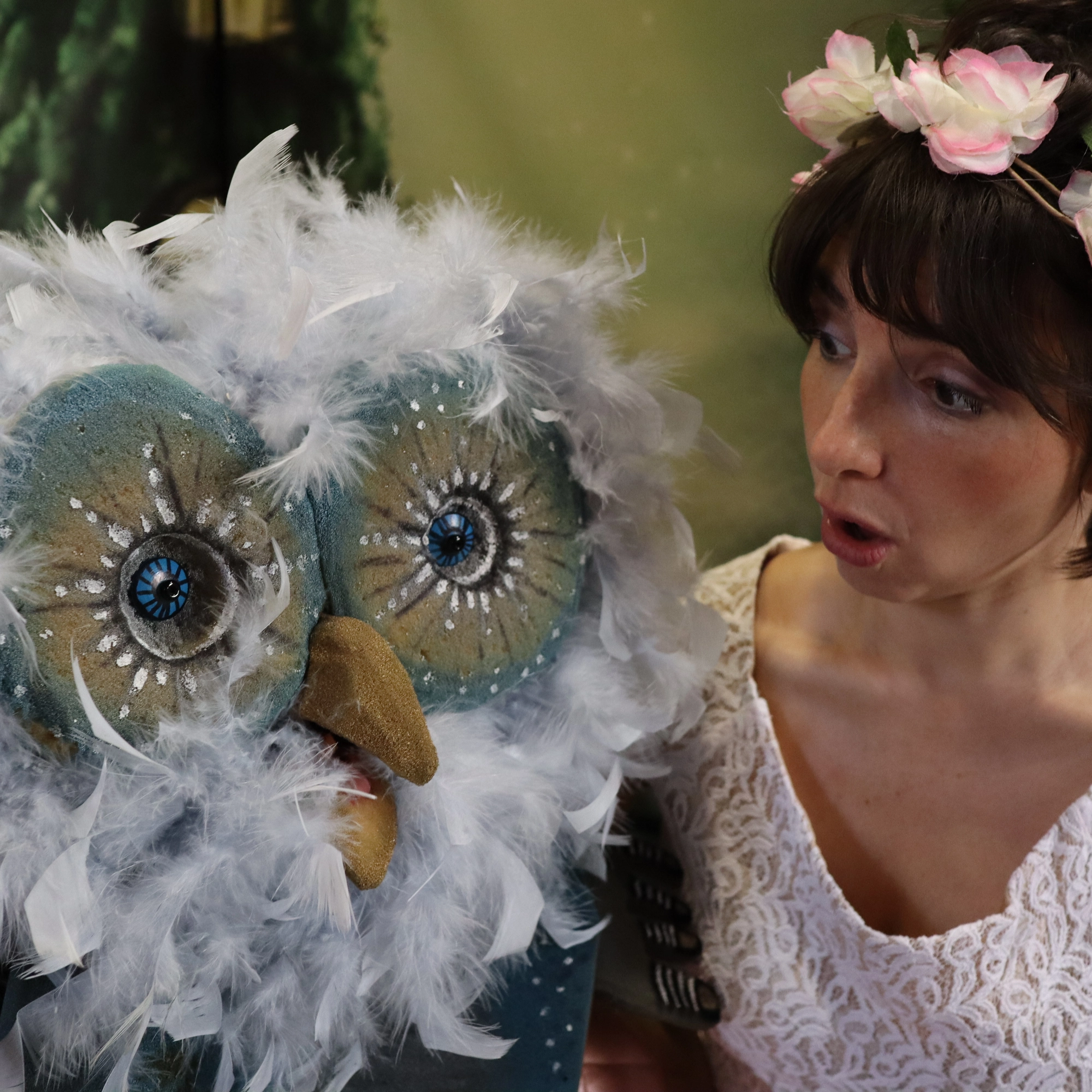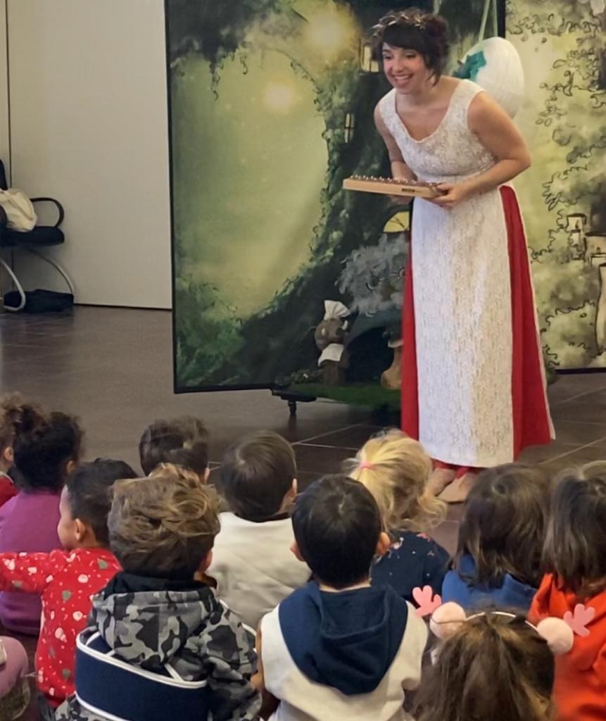 Les décors immersifs transportent les enfants dans un monde féerique. La comédienne chante, joue du xylophone, danse, et les encourage à participer, sentir des parfums et aider les personnages farfelus qu’elle rencontre.
